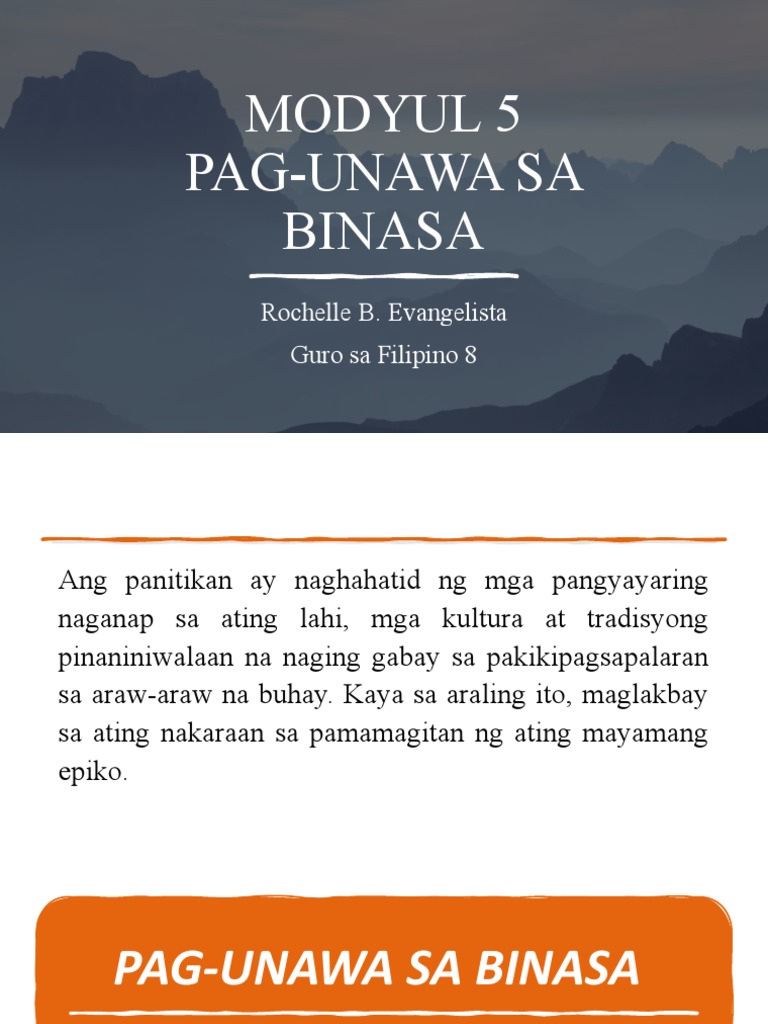 Modyul 5 Pag Unawa Sa Binasa Pdf