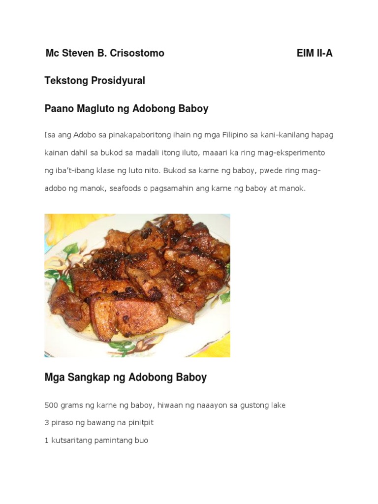 Magbigay ng konkretong halimbawa sa bawat uri ng tekstong prosidyural. She was a very lovely girl and a very sweet girl. Baboy Bawang Sibuyas Toyo Suka Langis Tubig Hakbang.